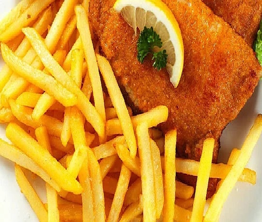 Schnitzel paniert mit Pommes (von Schwein ) 200 gr